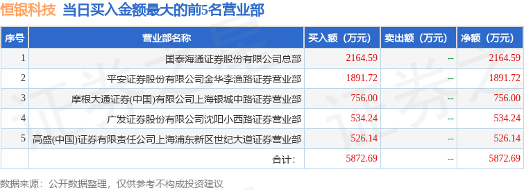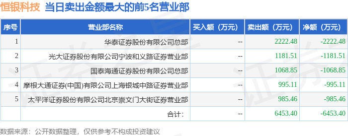 证券之星消息,沪深交易所2025年12月9日公布的交易公开信息显示,恒银科技(603106)因有价格涨跌幅限制的日收盘价格跌幅偏离值达到7%的前五只证券登上龙虎榜。此次是近5个交易日内第1次上榜。