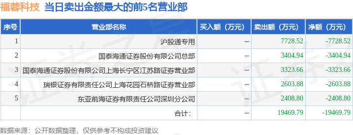证券之星消息,沪深交易所2025年12月9日公布的交易公开信息显示,福蓉科技(603327)因有价格涨跌幅限制的日价格振幅达到15%的前五只证券登上龙虎榜。此次是近5个交易日内第3次上榜。