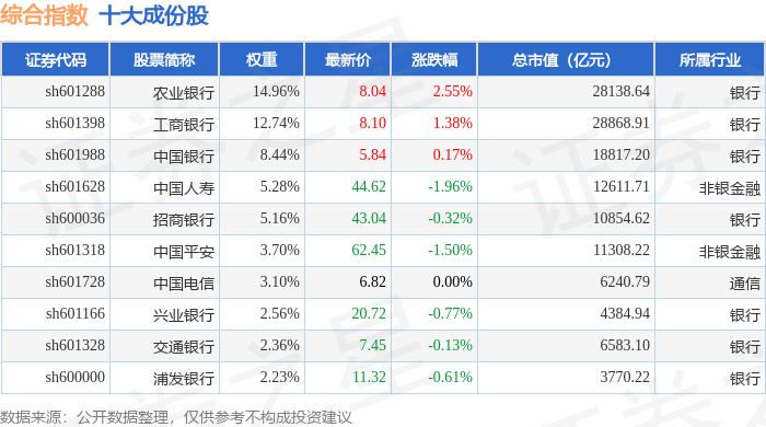 综合指数(000008)十大成份股详情如下: