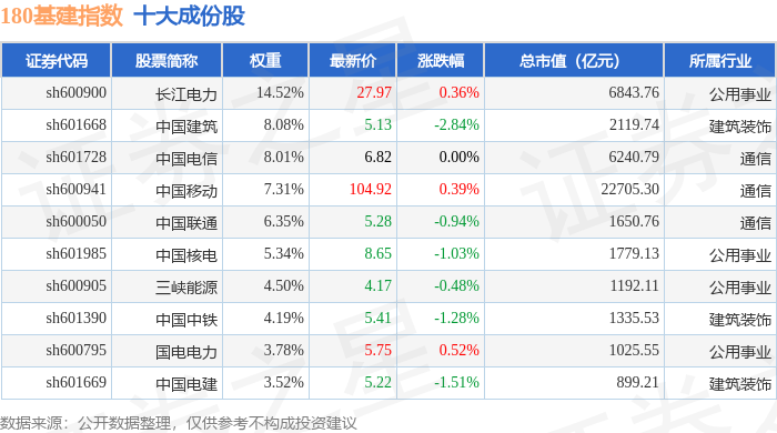 180基建(000025)指数十大成份股详情如下: