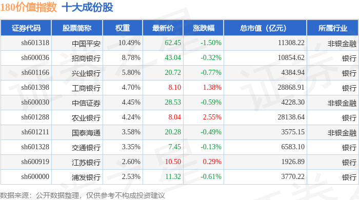 180价值(000029)指数十大成份股详情如下: