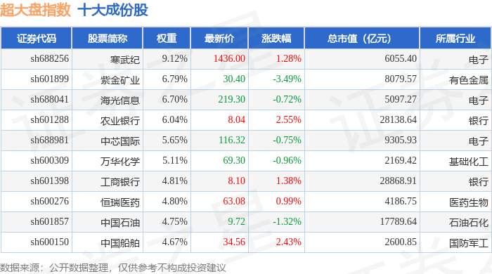 超大盘(000043)指数十大成份股详情如下:
