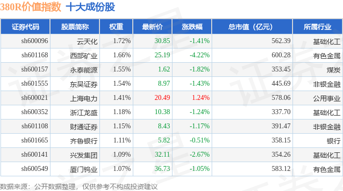 资金流向方面,380R价值(000120)指数成份股当日主力资金净流出合计39.92亿元,游资资金净流入合计11.22亿元,散户资金净流入合计28.7亿元。成份股资金流向详情见下表: