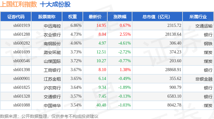 近10日内上国红利(000151)指数成份股做了调整,新纳入了6只股票,剔除了6只股票。