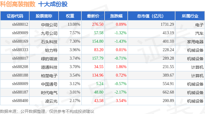 证券之星消息,12月9日,科创高装(000687)指数报收于1228.03点,跌0.49%,成交171.36亿元,换手率1.2%。当日该指数成份股中,上涨的有17家,盟升电子以4.36%的涨幅领涨,下跌的有33家,思看科技以4.26%的跌幅领跌。