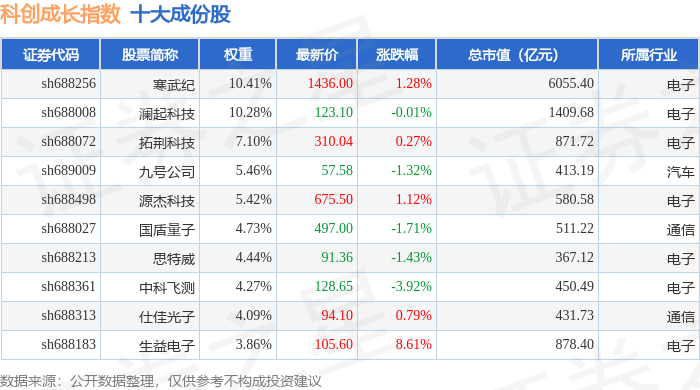科创成长(000690)指数十大成份股详情如下: