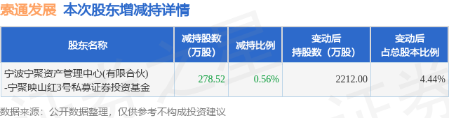 证券之星消息,12月9日索通发展发布公告《索通发展:索通发展股份有限公司股东减持股份结果公告》,其股东宁波宁聚资产管理中心(有限合伙)-宁聚映山红3号私募证券投资基金于2025年10月31日至2025年12月8日间合计减持278.52万股,占公司目前总股本的0.5592%,变动期间该股股价下跌5.92%,截止12月8日收盘报24.33元。
