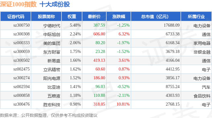 证券之星消息,12月9日,深证1000(399011)指数报收于6422.73点,跌0.43%,成交6958.65亿元,换手率1.97%。当日该指数成份股中,上涨的有217家,鼎泰高科以14.8%的涨幅领涨,下跌的有765家,中国天楹以7.75%的跌幅领跌。