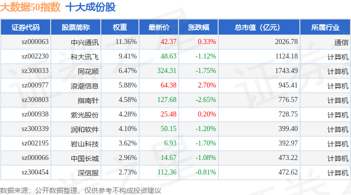 近10日内大数据50(399282)指数成份股做了调整,新纳入了3只股票,剔除了3只股票。