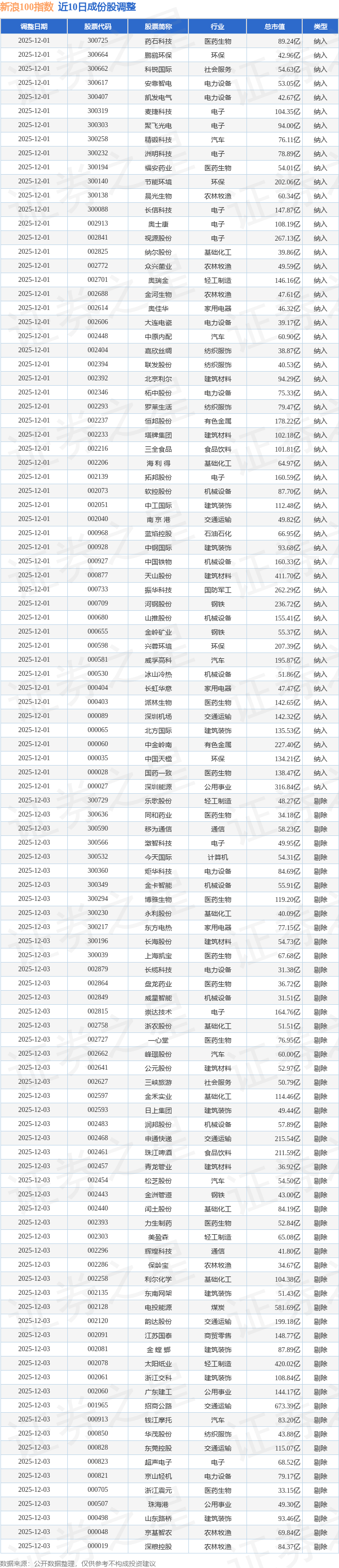 近10日内新浪100(399297)指数成份股做了调整,新纳入了54只股票,剔除了54只股票。