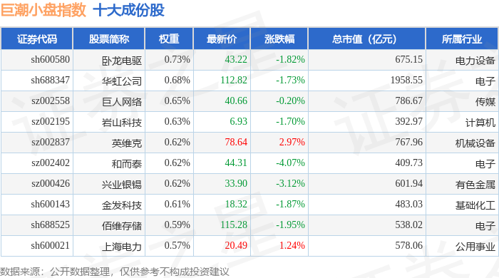 巨潮小盘(399316)指数十大成份股详情如下: