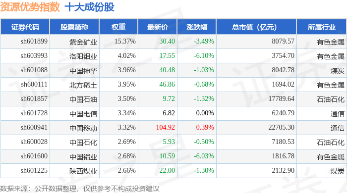 资金流向方面,资源优势(399319)指数成份股当日主力资金净流出合计64.78亿元,游资资金净流入合计18.57亿元,散户资金净流入合计46.21亿元。成份股资金流向详情见下表: