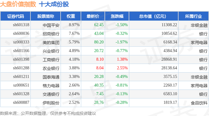 近10日内大盘价值(399373)指数成份股做了调整,新纳入了4只股票。