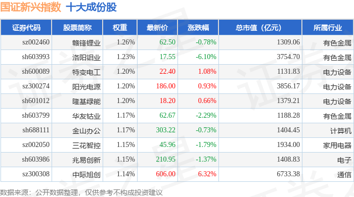 资金流向方面,国证新兴(399392)指数成份股当日主力资金净流出合计56.75亿元,游资资金净流入合计5.16亿元,散户资金净流入合计51.59亿元。成份股资金流向详情见下表: