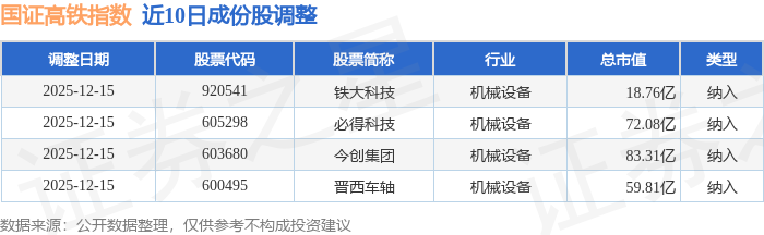 近10日内国证高铁(399419)指数成份股做了调整,新纳入了4只股票。