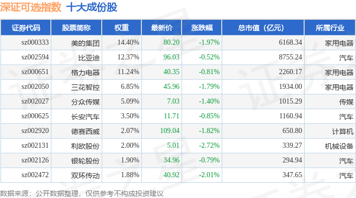 资金流向方面,深证可选(399616)指数成份股当日主力资金净流出合计37.59亿元,游资资金净流入合计7.17亿元,散户资金净流入合计30.42亿元。成份股资金流向详情见下表: