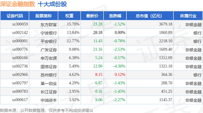 深证金融(399619)指数十大成份股详情如下: