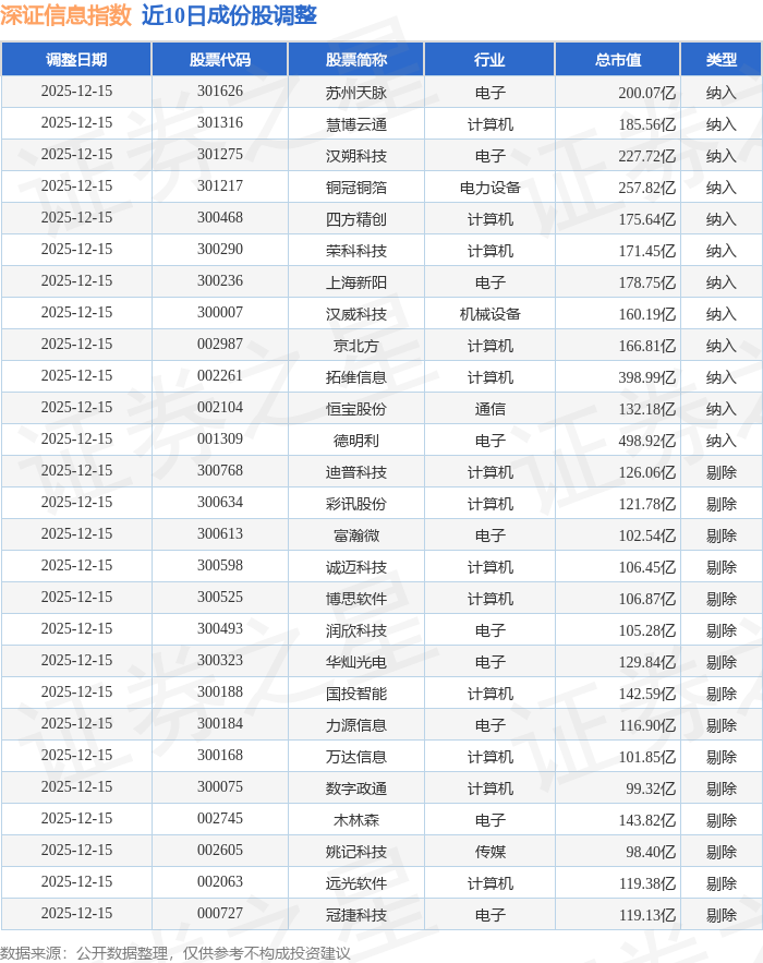 近10日内深证信息(399620)指数成份股做了调整,新纳入了12只股票,剔除了15只股票。