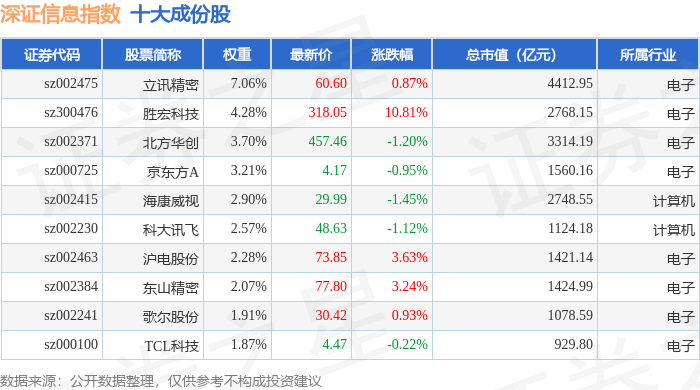 证券之星消息,12月9日,深证信息(399620)指数报收于5502.28点,涨0.48%,成交2002.91亿元,换手率2.53%。当日该指数成份股中,上涨的有50家,胜宏科技以10.81%的涨幅领涨,下跌的有85家,和而泰以4.07%的跌幅领跌。