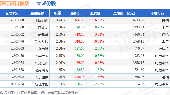 深证高贝(399662)指数十大成份股详情如下: