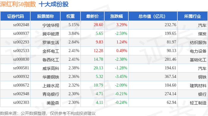 深红利50(399672)指数十大成份股详情如下: