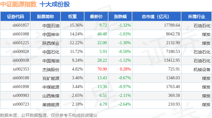 近10日内中证能源(399928)指数成份股做了调整,剔除了1只股票。