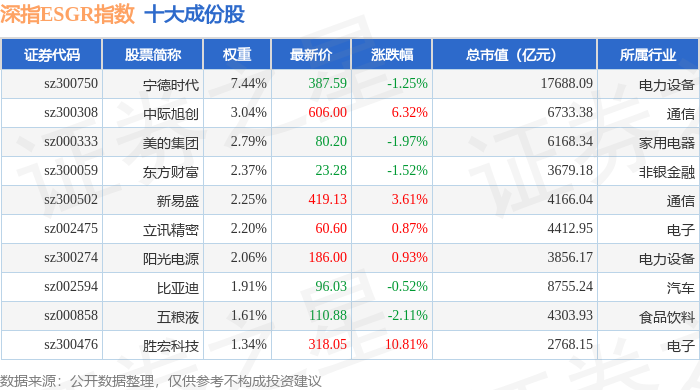 深指ESGR(470026)指数十大成份股详情如下: