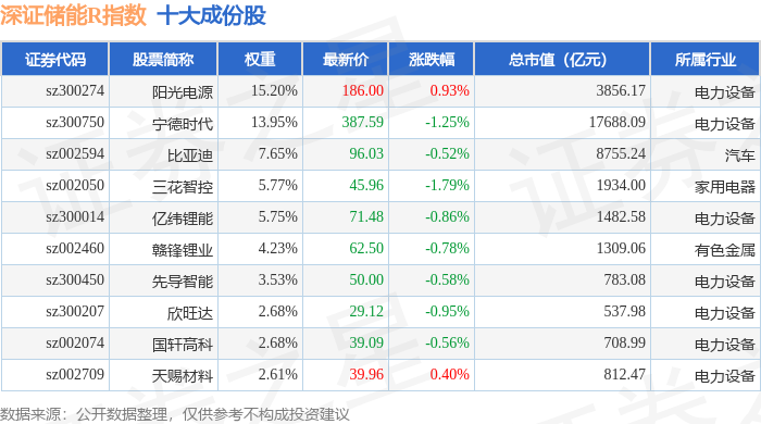 深证储能R(470036)指数十大成份股详情如下: