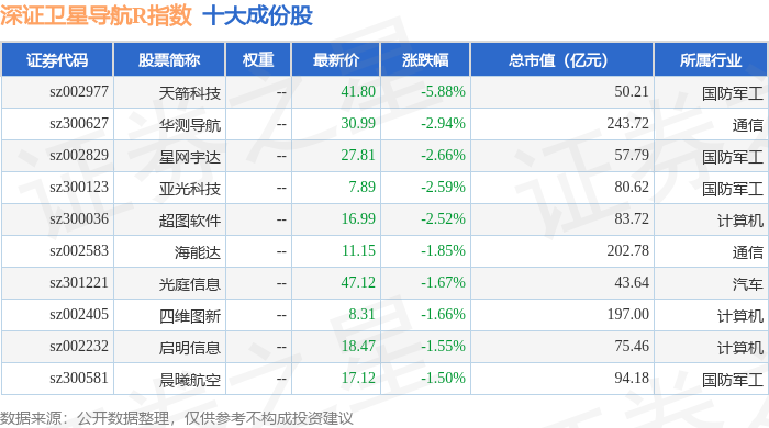 深证卫星导航R(470050)指数十大成份股详情如下: