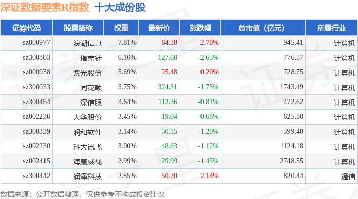 深证数据要素R(470053)指数十大成份股详情如下: