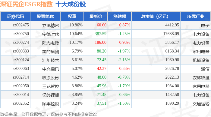 深证民企ESGR(470056)指数十大成份股详情如下: