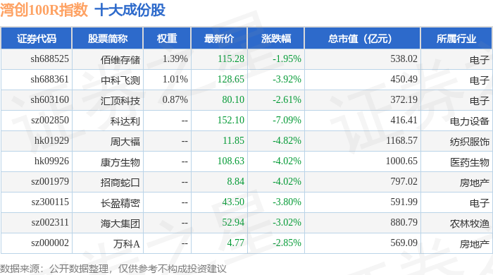 湾创100R(480001)指数十大成份股详情如下: