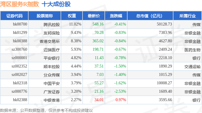 近10日内湾区服务R(480011)指数成份股做了调整,新纳入了1只股票。