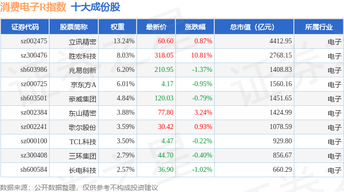 近10日内消费电子R(480030)指数成份股做了调整,新纳入了1只股票。