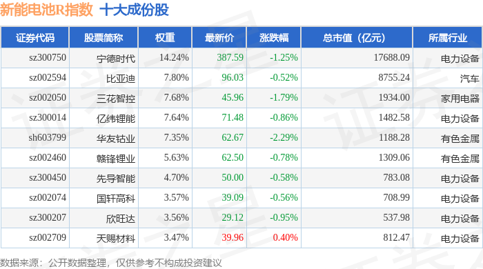 近10日内新能电池R(480032)指数成份股做了调整,新纳入了2只股票。