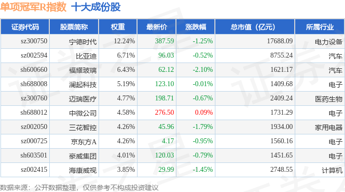 近10日内单项冠军R(480150)指数成份股做了调整,新纳入了5只股票。