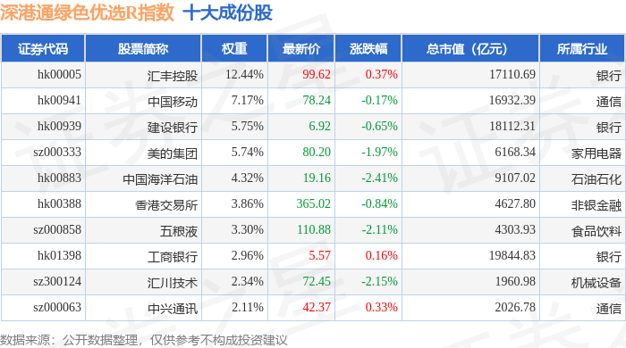 深港通绿色优选R(483011)指数十大成份股详情如下: