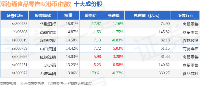 深港通食品零售R(港币)(483038)指数十大成份股详情如下: