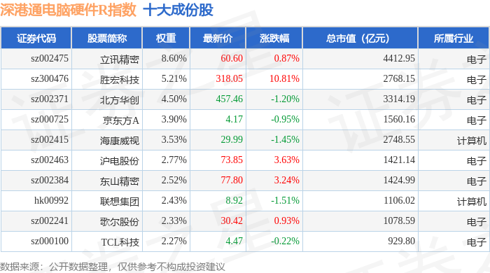 深港通电脑硬件R(483043)指数十大成份股详情如下: