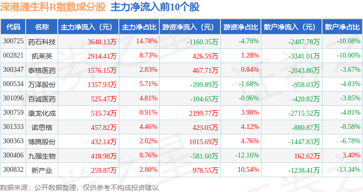 资金流向方面,深港通生科R(483059)指数成份股当日主力资金净流出合计3.33亿元,游资资金净流入合计1.82亿元,散户资金净流入合计1.52亿元。成份股资金流向详情见下表: