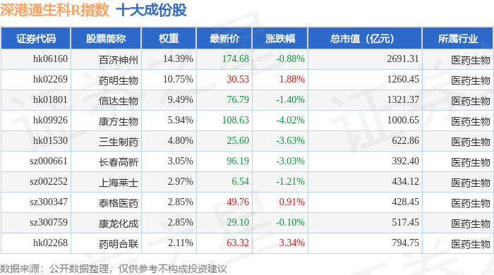 证券之星消息,12月9日,深港通生科R(483059)指数报收于7650.39点,跌1.43%,成交144.91亿元,换手率0.95%。当日该指数成份股中,上涨的有13家,昭衍新药以5.91%的涨幅领涨,下跌的有47家,金斯瑞生物科技以10.15%的跌幅领跌。