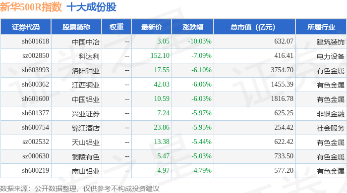 新华500R(489001)指数十大成份股详情如下: