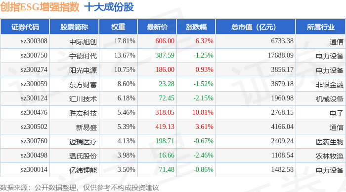 近10日内创指ESG增强(970034)指数成份股做了调整,新纳入了6只股票,剔除了6只股票。