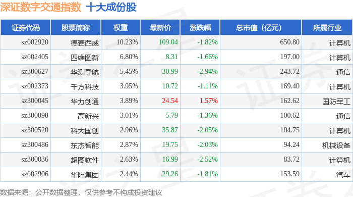 深证数字交通(970049)指数十大成份股详情如下: