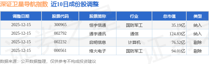 近10日内深证卫星导航(970050)指数成份股做了调整,新纳入了2只股票,剔除了2只股票。