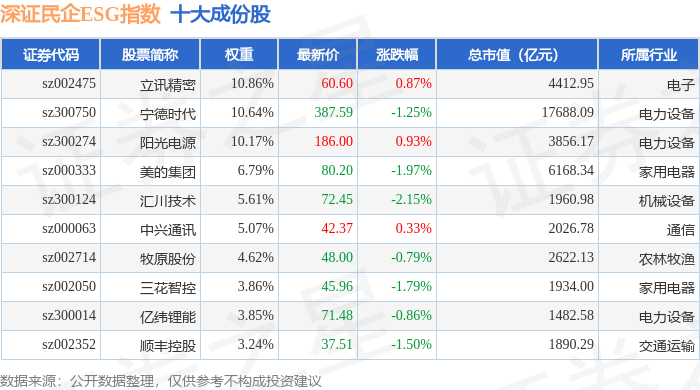 资金流向方面,深证民企ESG(970056)指数成份股当日主力资金净流出合计27.34亿元,游资资金净流入合计7.31亿元,散户资金净流入合计20.03亿元。成份股资金流向详情见下表: