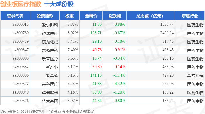 近10日内创业板医疗(970082)指数成份股做了调整,新纳入了2只股票,剔除了2只股票。