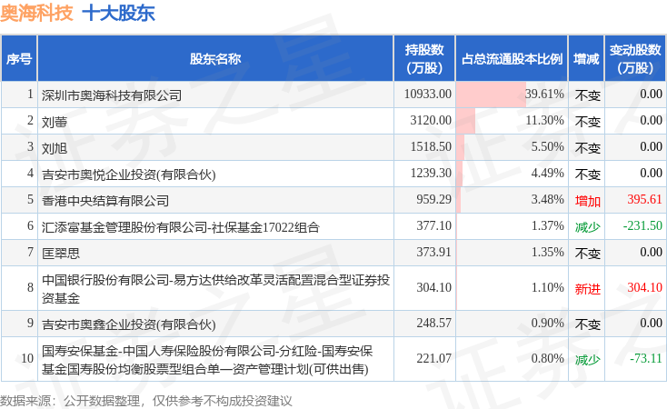 根据奥海科技2025年三季报公布的十大股东详情如下: