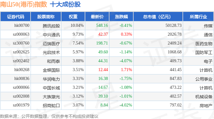 近10日内南山50(港币)(980024)指数成份股做了调整,新纳入了1只股票。