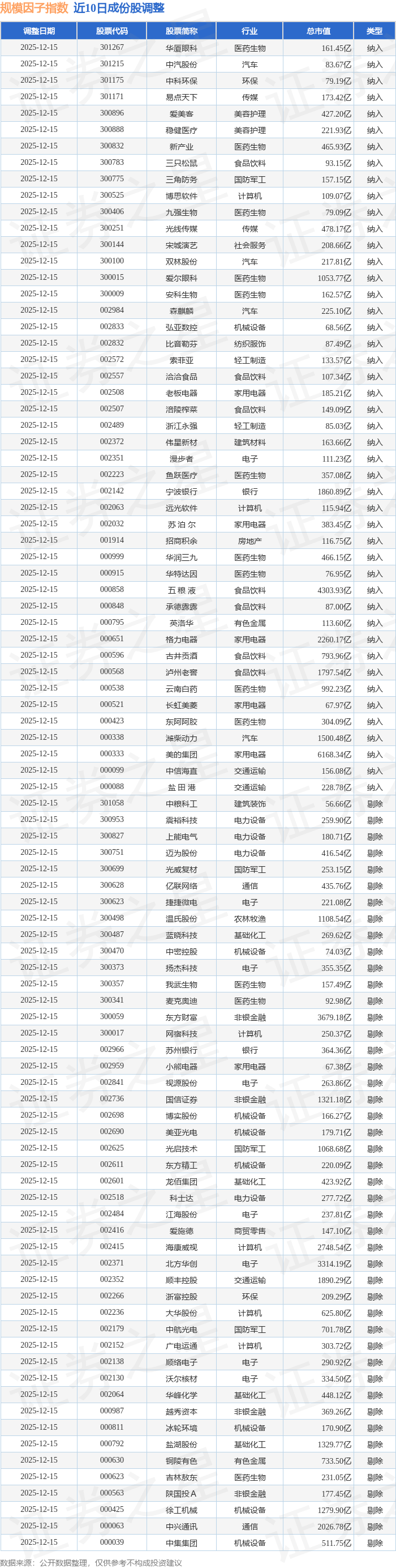 近10日内规模因子(980055)指数成份股做了调整,新纳入了46只股票,剔除了46只股票。